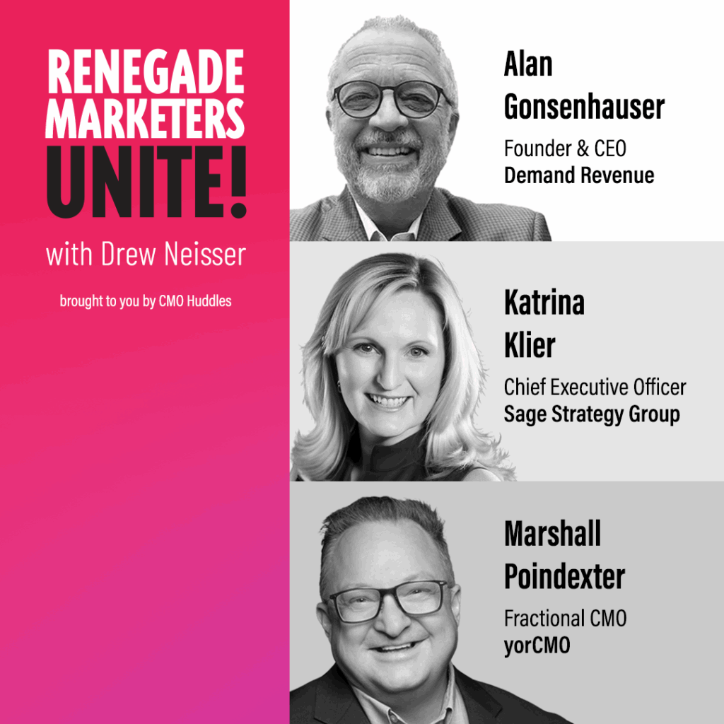 In this episode, Drew brings together three former full-time CMOs who now serve as full-time fractionals: Alan Gonsenhauser (Demand Revenue), Katrina Klier (Sage Strategy Group), and Marshall Poindexter (yorCMO). They get into what it really takes to succeed in the role, from setting expectations with CEOs and boards to choosing the right clients, managing time and scope, and knowing when the fractional model fits and when it is time to move on.